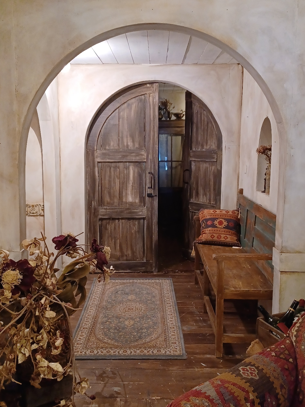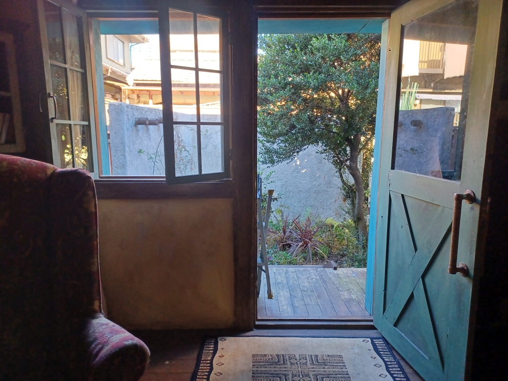 アーチが印象的な室内は、まるで一枚の絵画の中に入り込んだような幻想的な雰囲気を醸し出します。メインルームには、アーチ型の扉をはじめ、テーブルやソファが配置され、落ち着いた空間が広がります。その扉を抜けると約5畳のアトリエがあり、創作のための静かな時間を過ごせる場所となっています。さらに、光が差し込む廊下を進むと、約10畳の広々とした部屋が現れ、柔らかな自然光のもとでの撮影が可能です。裏庭も備え、屋内外を問わず多彩なシーンを演出できるこの空間は、さまざまな文化が溶け合い、独特の世界観を生み出しています。